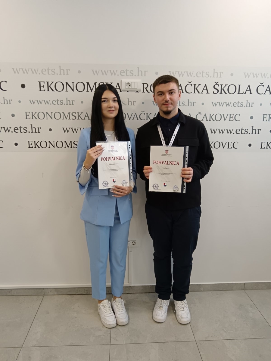 Nakon održanog školskog natjecanja 18.12.2025. godine u kojem su učenici 4.E razreda Iva Jakopec i Ivana Roginek (1. tim) te Leonarda Jurenec i Leo Murić (2. tim) osmišljavali tržišno uvođenje višekratne ekološke boce za vodu izrađene od recikliranog nehrđajućeg čelika, na izlučno natjecanje u disciplini Poduzetnoštvo pozvani su bili Leonarda Jurenec i Leo Murić.