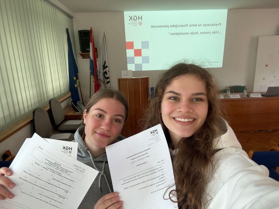 Povodom Svjetskog i Europskog tjedna novca od 16. do 22. ožujka 2026. godine, u okviru projekta Hrvatske gospodarske komore „Više znamo, bolje razumijemo“, HGK - Županijska komora Varaždin u suradnji s HGK - Odjelom za financijske institucije i makroekonomske analize organizirala je predavanje na temu financijske pismenosti za učenike srednjih škola Varaždinske županije.