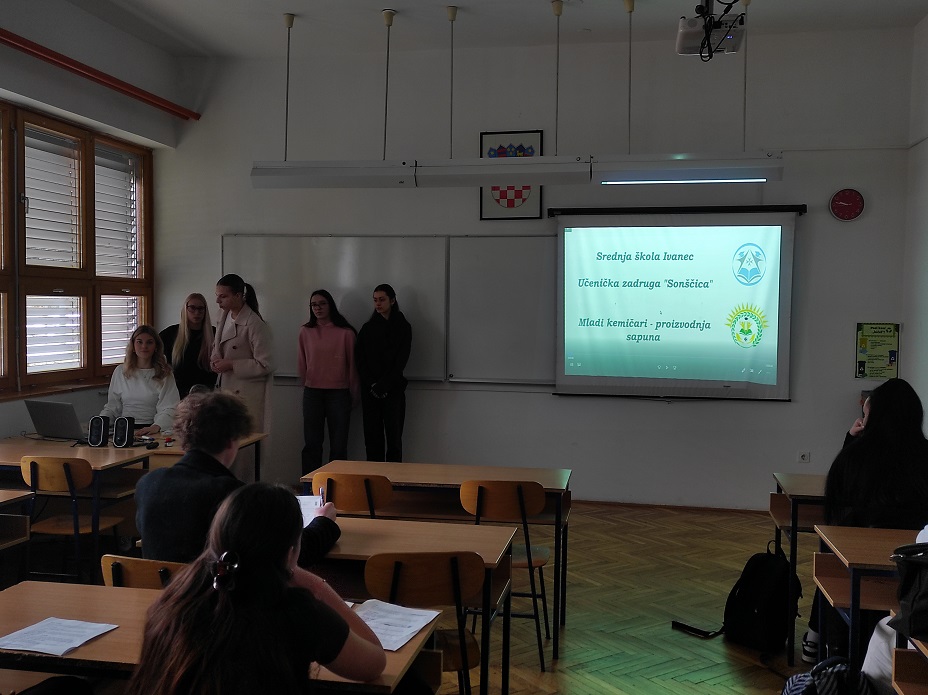 Tijekom radionice, učenici članovi izvannastavne aktivnosti "Mladi kemičari" mentorirani od strane nastavnice kemije, Renate Vlaisavljević, održali su kratko predavanje o sastavu i kemijskim procesima izrade sapuna, koje su dopunili prikazom videouradka s detaljnim pojašnjenjem postupka proizvodnje sapuna na konkretnom primjeru.
